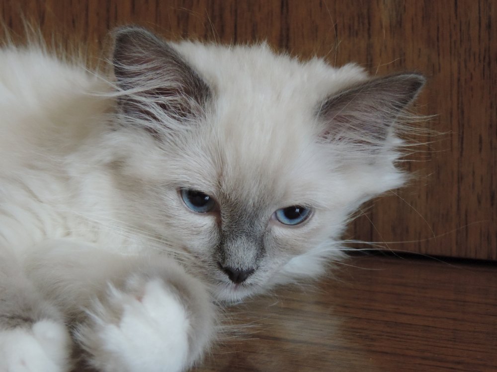 Ale, jak już uznałam, że się wyspałam i ledwo się poruszyłam, natychmiast była przy mnie. Wlepiła swoje modre oczy prosto na mnie i zrobiła taką minę, jakby zaraz miały ją z głodu opuścić siły. Poszłam więc do lodówki po drugą część puszeczki. Otwieram drzwi, a tu Fifi na czatach. Czyżby przesiedziała całą noc pod naszymi drzwiami?