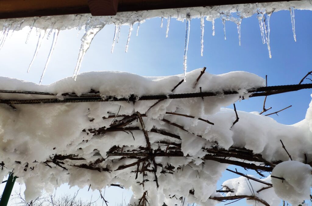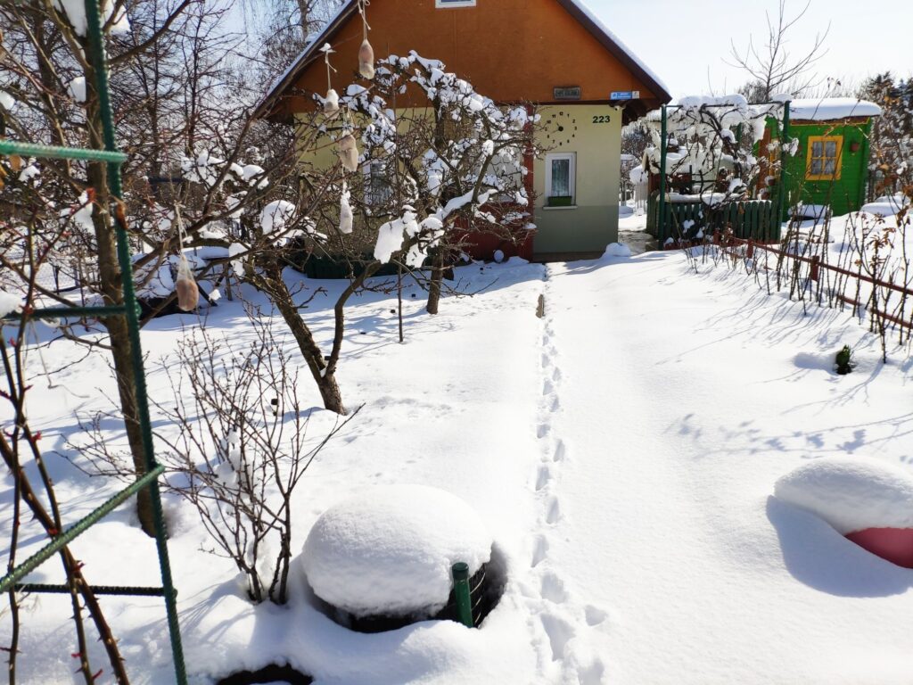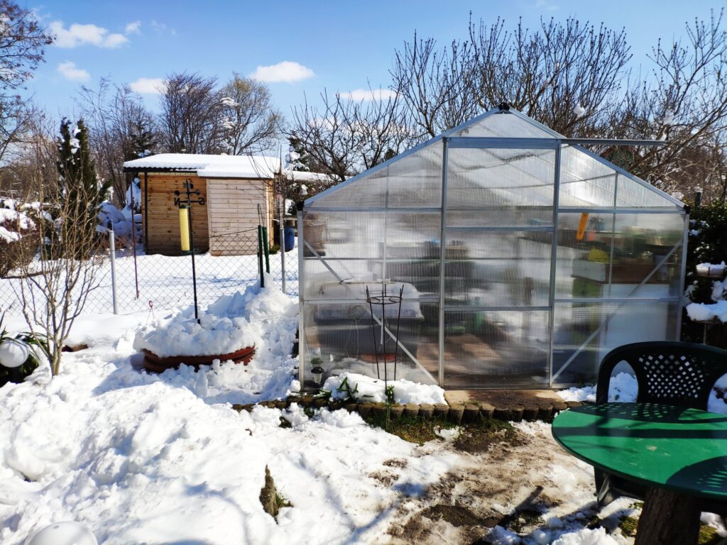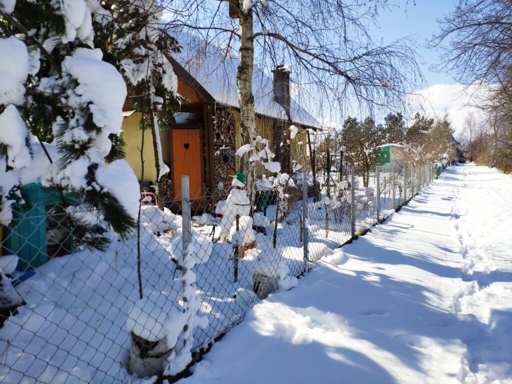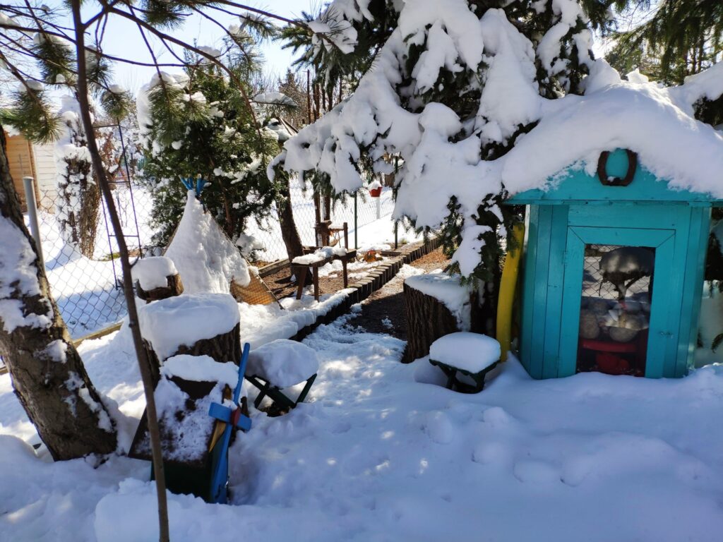 Dzisiaj byłam na działeczce. Śniegu po kostki. Z duszą na ramieniu podeszłam do szklarenki. Wyglądało groźnie. Jest dopiero po remoncie. Udźwignęła ten ogromny ciężar, ale jednak trzeba będzie wzmocnić jej „kręgosłup”. Może uda się przeciągnąć jakiś gruby pręt pod samym szczytem przez jej całą długość (pomysł małżonka).