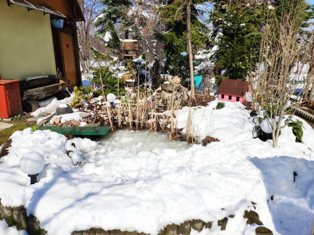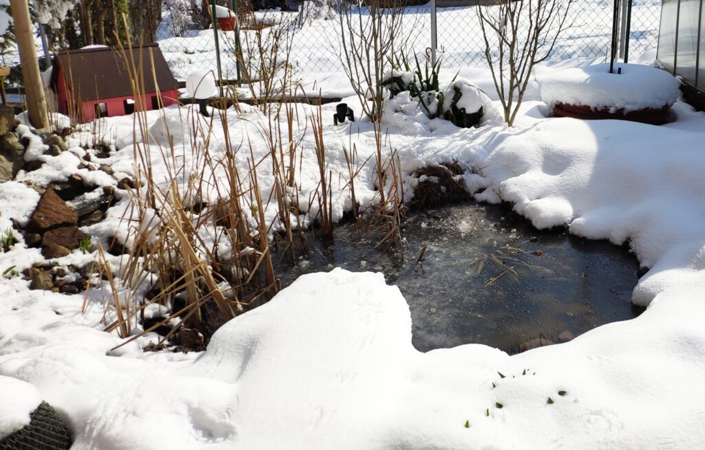 Dużo było odśnieżania. Przy okazji napełniliśmy oczko. Zanim włączą wodę, przyda się takie zasilenie. Dobrze, że spadł ten śnieg, choć lepiej by było, gdyby to był deszcz, choćby i ulewa. Na polu było bardzo sucho, a wody w oczku ubywało podczas podlewania.