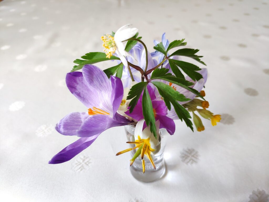 Pierwszy wiosenny bukiecik. Przyniosłam go Stasiowi. Rozchorował się i nie może przyjechać na działaczkę, żeby zobaczyć wiosnę. Nie możemy też pojechać razem po kurki. Ale jak wyzdrowieje, to obiecałam mu, że „nadgonimy” wszystkie zaległości.