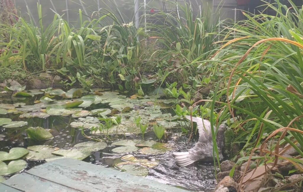 Leon coraz odważniej poznaje zakątki Koperkowa. Dzisiaj ponownie wszedł do oczka wodnego, ale już nie z mosteczka tylko po kamieniach z brzegu. Nie było łatwo. Kilka prób mu się nie udało (ześlizgnął się z kamieni). Ale w końcu znalazł grunt pod nogami i mógł zanurzyć się w wodzie. Jego radość była tak ogromna, że musiałam przerwać rozmowę telefoniczną, żeby nagrać filmik. Zdjęcie to kadr z tego filmiku.