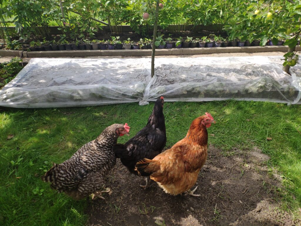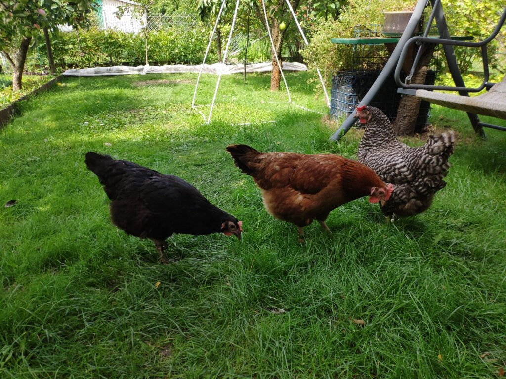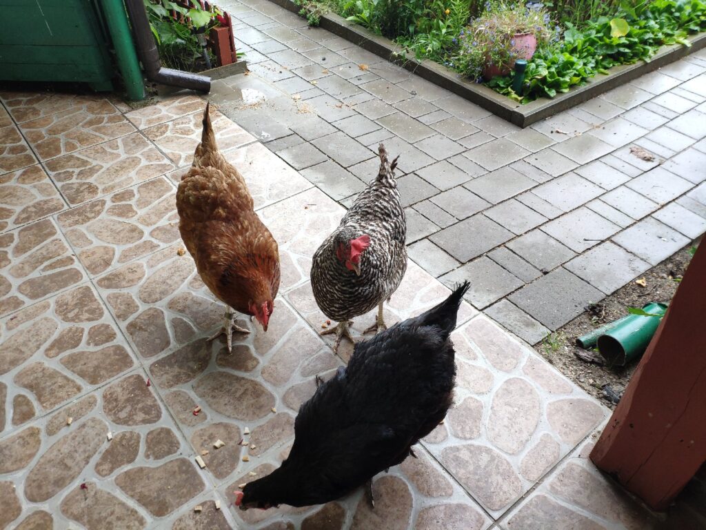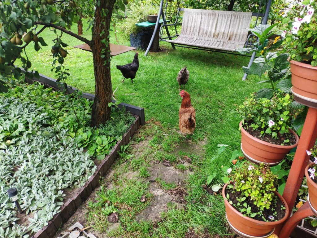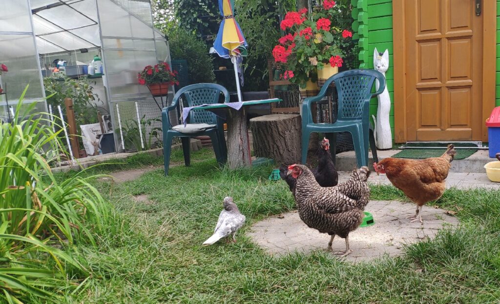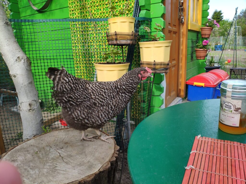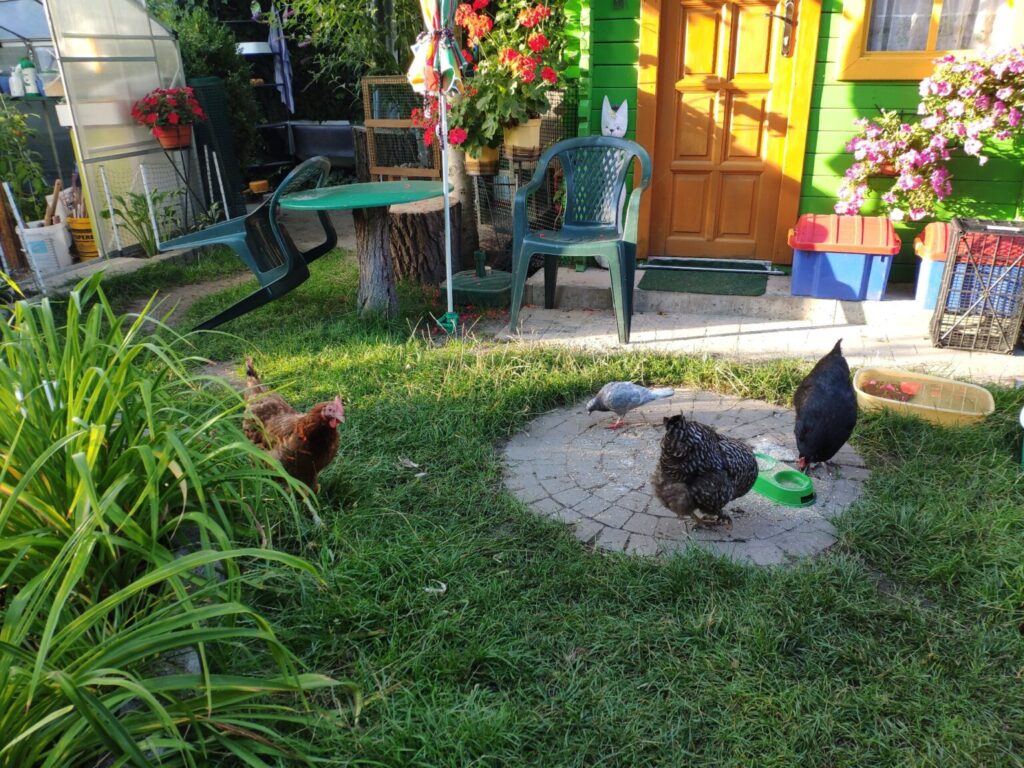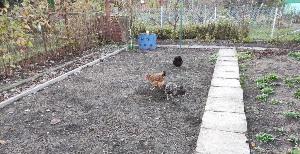 Czarna, Jarzębata i Czerwona z czarnym piórkiem na ogonie pracowały u mnie 8 miesięcy. Codziennie (z bardzo małymi wyjątkami) znosiły mi trzy jajka. Czerwonej jajko miało jasną skorupkę, Jarzębatej ciemniejszą, zaś Czarnej jajka były najciemniejsze. Moje kurki były bardzo pracowite. Zniosły mi około 700 jaj. Dbałam o nie, troszczyłam się, żeby były zdrowe, żeby niczego im nie brakowało. A gdy ogród był już po zbiorach, udostępniłam im całą działkę. Wstawały, gdy dzień się budził i szły spać, gdy zachodziło słońce. Nie zamykałam ich w kurniku. Były wolne. Myślę, że były szczęśliwymi kurami.