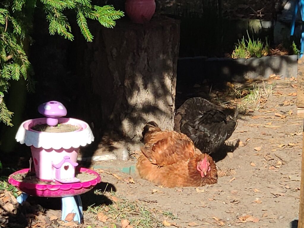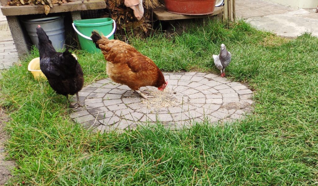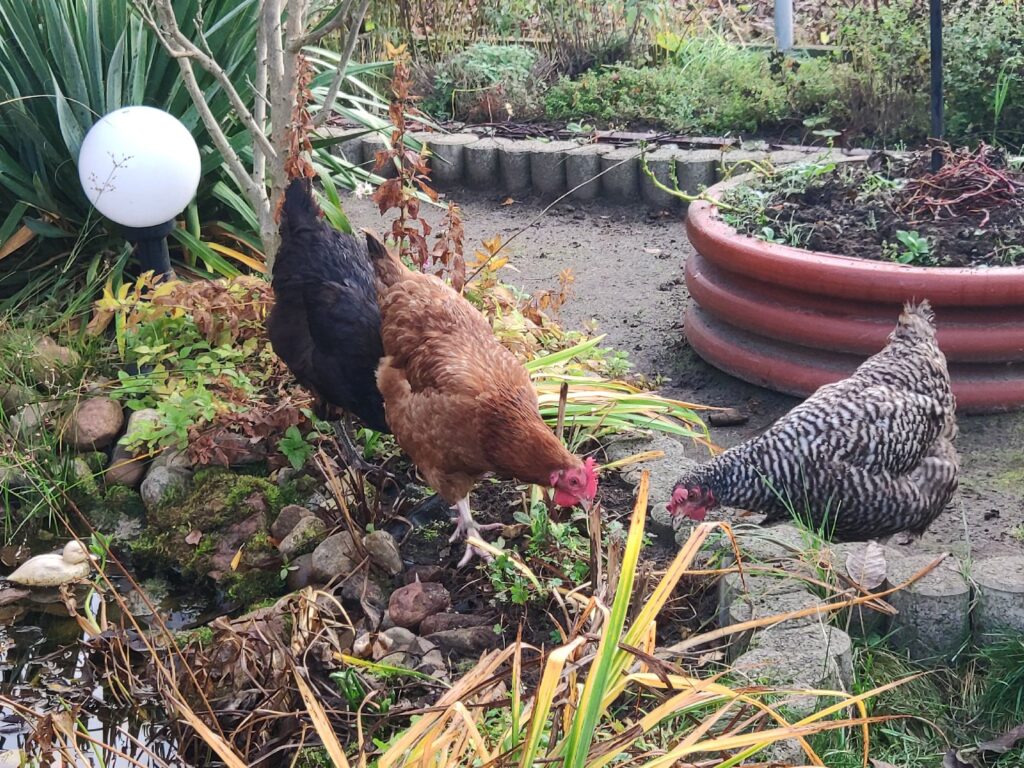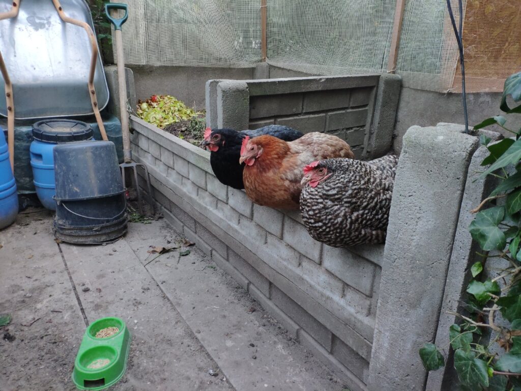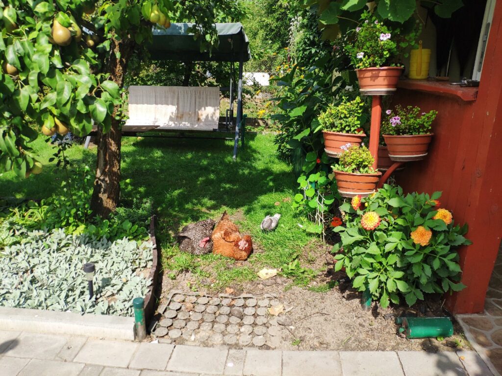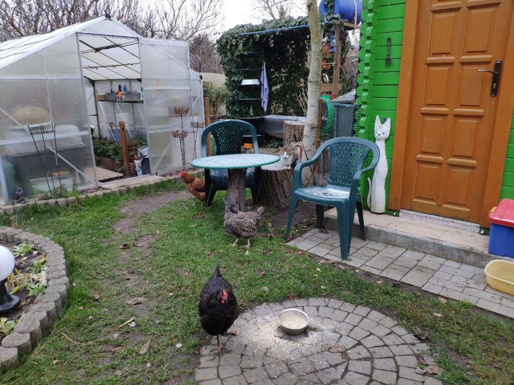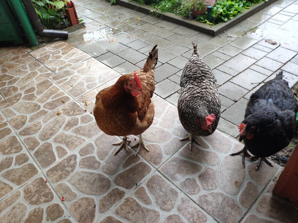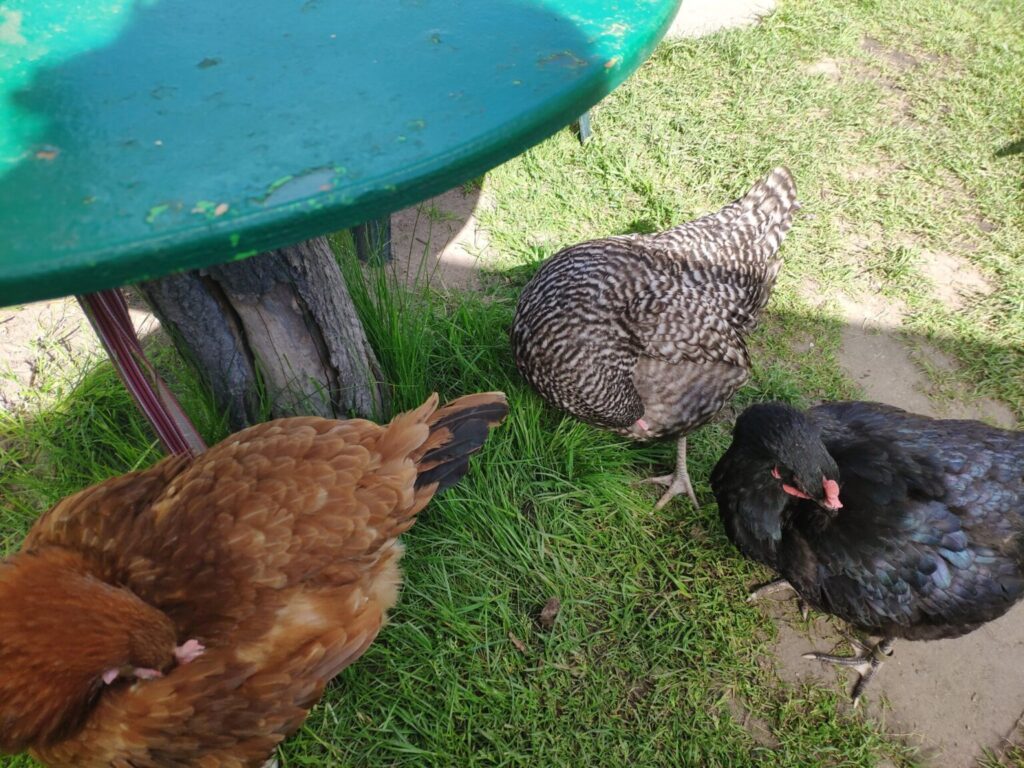 Czarna, Jarzębata i Czerwona z czarnym piórkiem na ogonie pracowały u mnie 8 miesięcy. Codziennie (z bardzo małymi wyjątkami) znosiły mi trzy jajka. Czerwonej jajko miało jasną skorupkę, Jarzębatej ciemniejszą, zaś Czarnej jajka były najciemniejsze. Moje kurki były bardzo pracowite. Zniosły mi około 700 jaj. Dbałam o nie, troszczyłam się, żeby były zdrowe, żeby niczego im nie brakowało. A gdy ogród był już po zbiorach, udostępniłam im całą działkę. Wstawały, gdy dzień się budził i szły spać, gdy zachodziło słońce. Nie zamykałam ich w kurniku. Były wolne. Myślę, że były szczęśliwymi kurami.