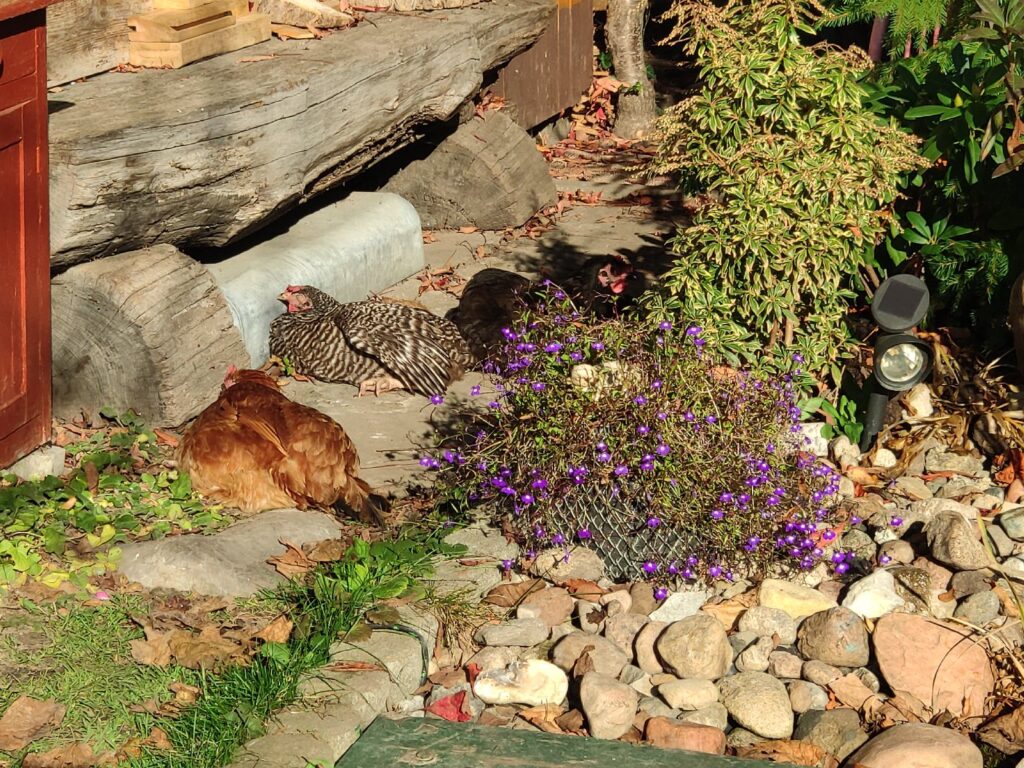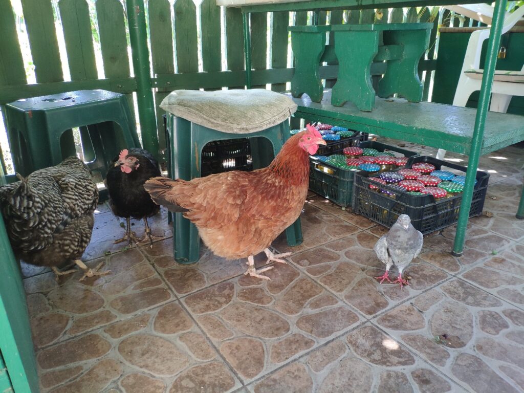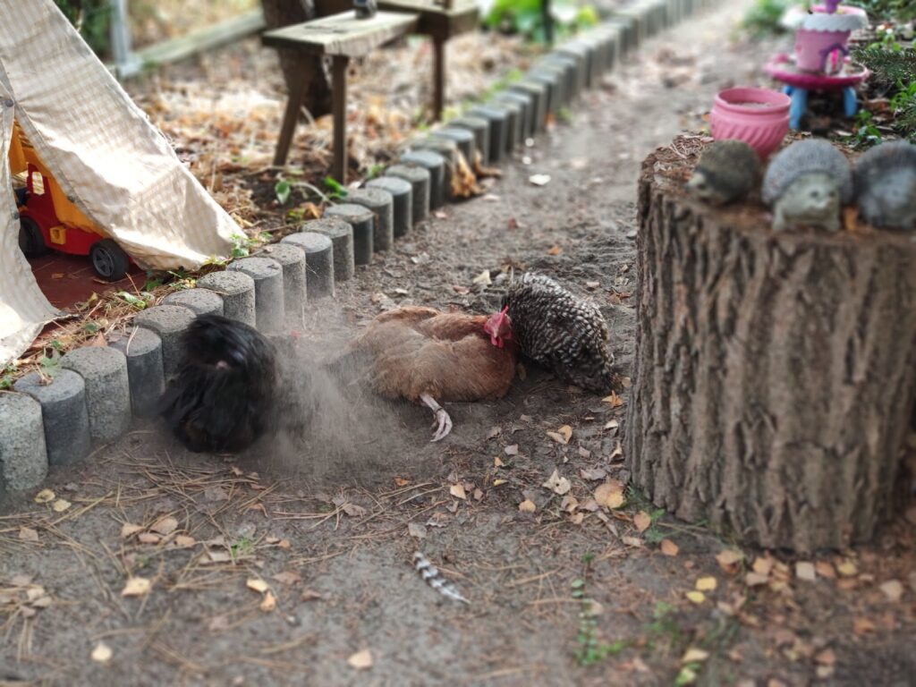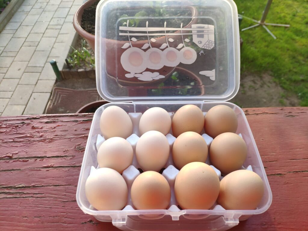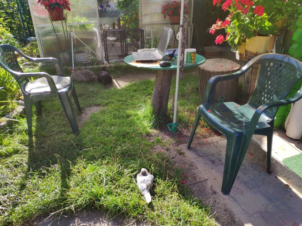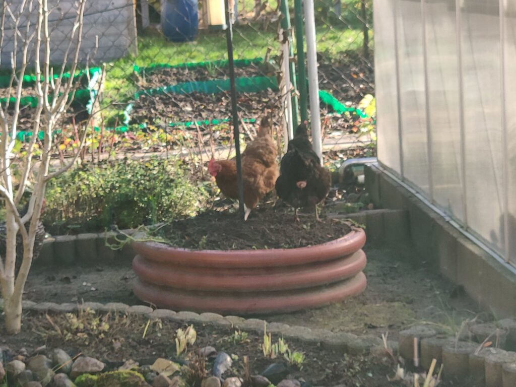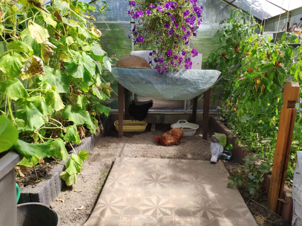 Czarna, Jarzębata i Czerwona z czarnym piórkiem na ogonie pracowały u mnie 8 miesięcy. Codziennie (z bardzo małymi wyjątkami) znosiły mi trzy jajka. Czerwonej jajko miało jasną skorupkę, Jarzębatej ciemniejszą, zaś Czarnej jajka były najciemniejsze. Moje kurki były bardzo pracowite. Zniosły mi około 700 jaj. Dbałam o nie, troszczyłam się, żeby były zdrowe, żeby niczego im nie brakowało. A gdy ogród był już po zbiorach, udostępniłam im całą działkę. Wstawały, gdy dzień się budził i szły spać, gdy zachodziło słońce. Nie zamykałam ich w kurniku. Były wolne. Myślę, że były szczęśliwymi kurami.
