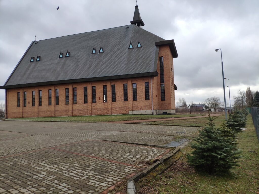 Kaplica została postawiona na drugim końcu osiedla po drugiej stronie ul. Wierzbickiej.