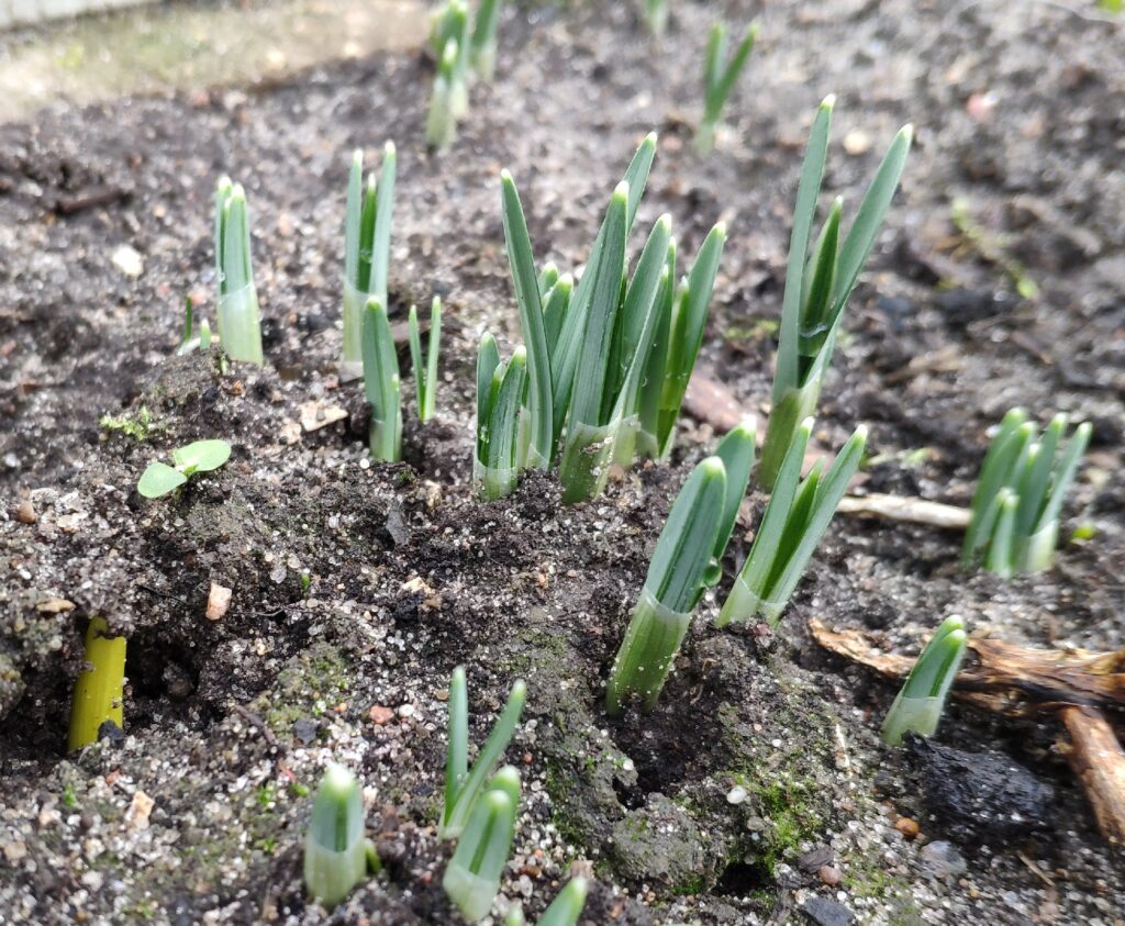 Od ponad dwóch tygodni mamy plusową temperaturę. Krety zaczynają pracować nad kopcami. Dzisiaj ziemię z kilku kopców wykorzystałam na wysianie nasion. Wysiałam na próbę do doniczek por, seler, sałatę i pelargonię ogrodową. Wszystko zaniosłam do domku. Przesadziłam „z pola” do doniczek niezapominajki, które mi się rozsiały przy różach. Przeniosłam je do szklarni, żeby trochę podpędzić. Może szybciej będę miała wiosnę w swoim ogrodzie. Bardzo stęskniłam się za nią.
