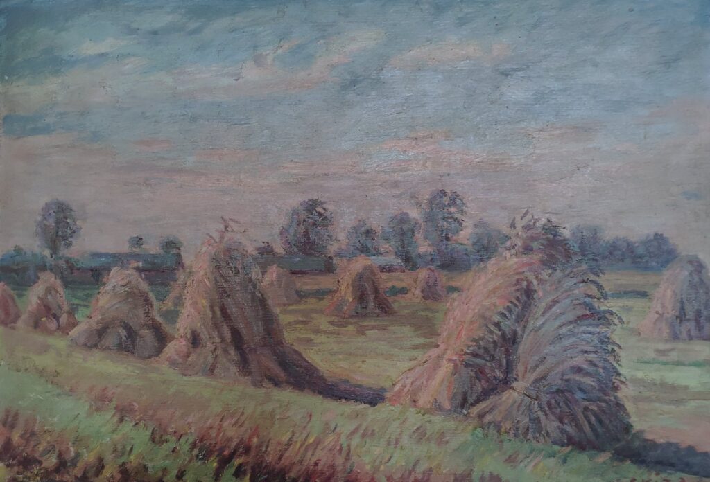 Moje Polesie to czas po II wojnie światowej. Czas akcji „Wisła”. Moje Polesie to dom strzechą kryty, płoty z gałęzi wyplecione … Moje Polesie to także pola z „laszkami”, jak na powyższym zdjęciu. Snopki ustawiane w „dziesiątki”. Pierwszy snopek był kręgosłupem laszka. Ustawiano go pionowo (taki snopek zwykle trzymało dziecko). Do niego rodzice dostawiali kolejnych 8 (najpierw jedną czwórkę, potem drugą czwórkę). Na wierzch stawiano dziesiąty snopek (czapkę), uprzednio starannie rozkładając kłosy. Czapka chroniła cały laszek przed deszczem.