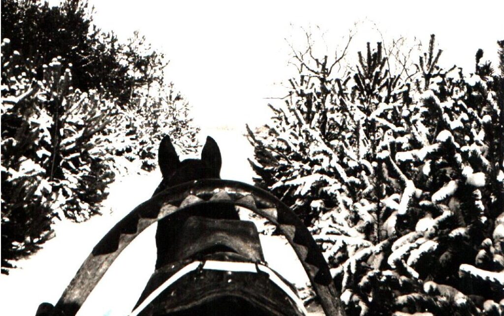 Dzisiejszy widok z okna przywołał mi wspomnienie z mojej młodości – kulig. Wyciągnęłam stare zdjęcia. Poniżej jedno z nich.
