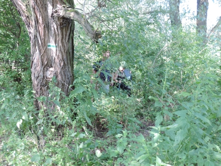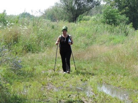 Musimy przejść przez ruchliwą ulicę Maratońską, przejść przez most na prawy brzeg rzeki. Na moście inny wędrowiec – ślimak. Dokąd on podąża – tego nie wiemy, ale idziemy jakby w jednym kierunku. Nie czekając na ślimaka wchodzimy zaraz za mostem na drogę polną i dalej w nieużytki, w chaszcze, w trzciny i w pokrzywy … pokrzywy … pokrzywy. Dodatkowo jesteśmy zszokowani ilością wyrzuconych tam śmieci. Spotykamy jakieś stare rury, murki rozwalające się – świadków dawniejszych użytkowników rzeki, aż w końcu wychodzimy z tego co najmniej nieciekawego odcinka naszej wędrówki i wchodzimy na ładną ścieżkę z trylinki. Wchodzimy na niebieski mostek i idziemy lewym brzegiem rzeki, ładną ścieżynką w pobliżu koryta rzeki. Po lewej stronie mijamy firmę „Mega …” i dochodzimy do ul. Generała Leopolda Okulickiego, ostatniego Komendanta Głównego Armii Krajowej.