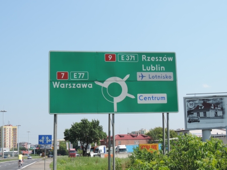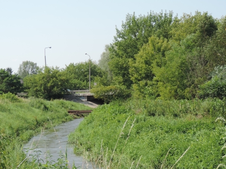 Nie ryzykujemy przeskakiwaniem przez dwie jezdnie uzbrojone w bariery, w końcu to przecież „siódemka” i ruch o tej porze już bardzo duży. Trudno się mówi, maszerujemy przykładnie poboczem ulicy co rusz spoglądając na jej drugą stronę. Stwierdzamy, że przeskoczenie nic by nam dało, gdyż zarośla wzdłuż rzeki są tak duże, że trudno byłoby nam przez nie przejść, a do ronda daleko nie jest. Po drodze dyskutujemy nad dalszą trasą naszej wędrówki, gdyż rzeka nieco od nas się oddala. Ostatecznie dochodzimy do wspólnego porozumienia, że po przejściu przez ul. Czarnieckiego przed rondem pójdziemy dalej ul. Warszawską. Na najbliższym przejściu dla pieszych przejdziemy na jej drugą stronę, na moście zatrzymamy się i przestudiujemy nasze mapy i pomysły. Tak więc ścinając zakola rzeki wyprostowaliśmy sobie dolinę rzeki Mlecznej i w niecałe 10 minut już byliśmy na moście.