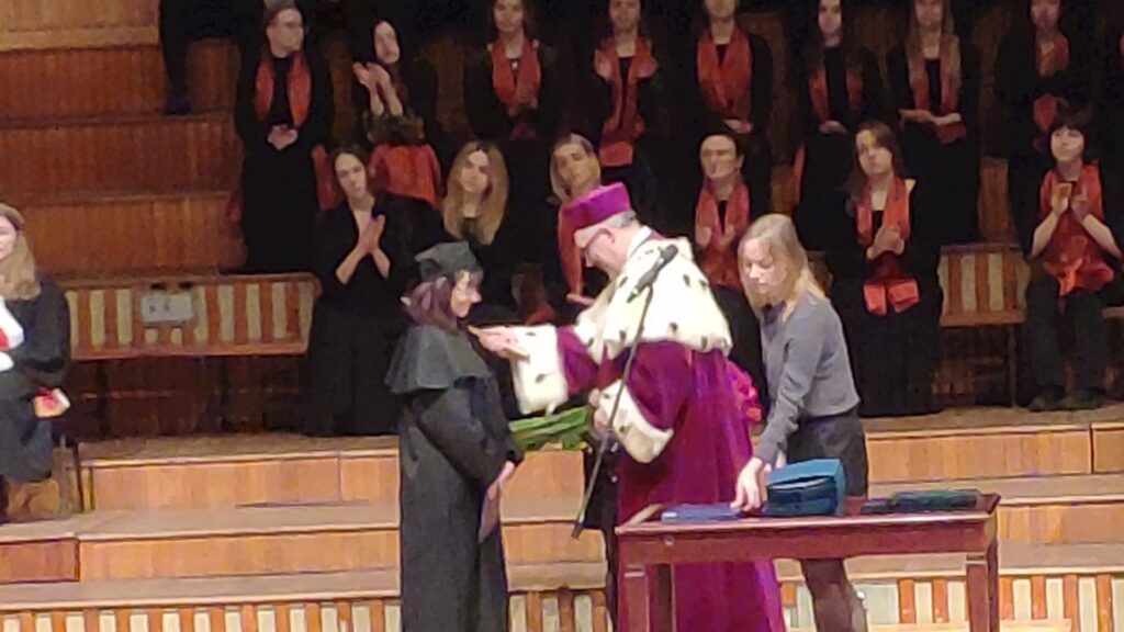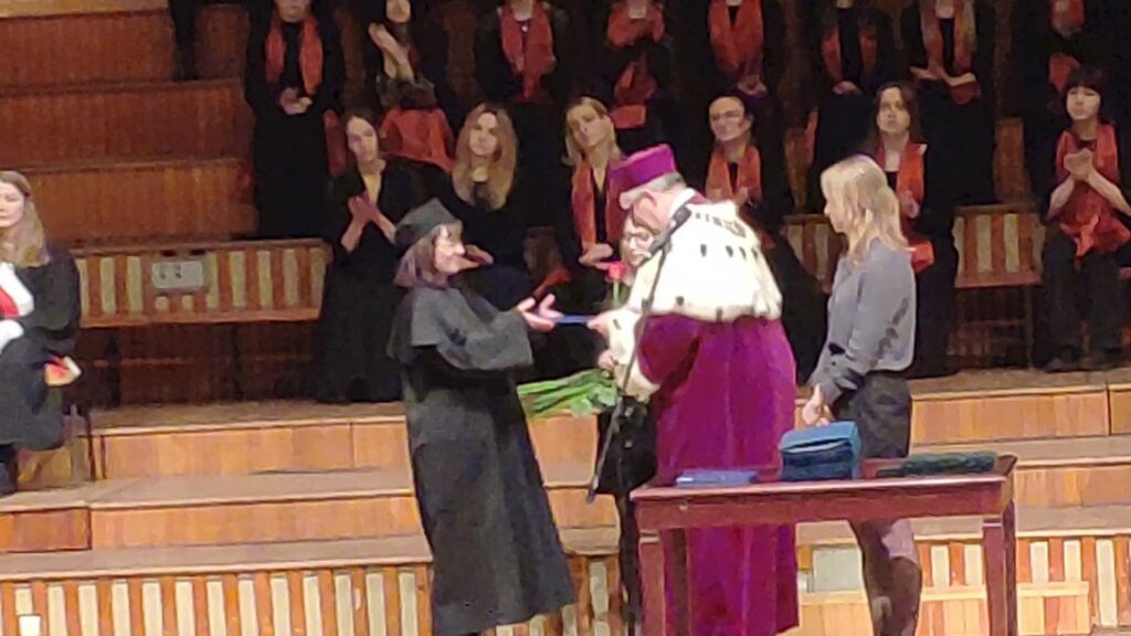 We środę 22 lutego w Sali Koncertowej UMFC w Warszawie odbyło się doroczne Święto Uczelni podczas którego wręczono zasłużonym dla Uczelni nagrody. Tego dnia odbyła się także uroczysta promocja doktorów tejże uczelni. W tym roku dyplom doktora sztuki otrzymała nasza córka Dorotka. Dla rodziców to ogromy zaszczyt uczestniczyć w takim święcie.