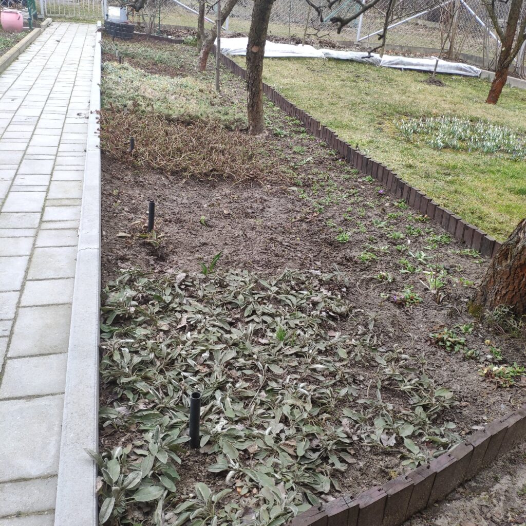 Po obiedzie pojechałam na działeczkę. Zrobiłam porządeczek na rabatce pod jabłonkami. Teraz czekam jak ten mój „dywanik” zakwitnie.