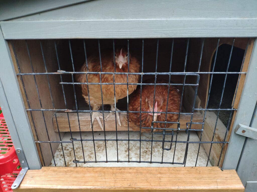 Wczoraj przywiozłam dwie kurki – rosa czerwona. Żeby można je było odróżnić, jedna jest jaśniejsza, a druga ciemniejsza. Jedna jest dla Stasia, druga dla Oli. Kurki są jeszcze młode. Mają 18 tygodni, więc nieść się zaczną dopiero może za miesiąc. Na razie są smutne. Pierzą się i nie bardzo chcą wychodzić z kurniczka.