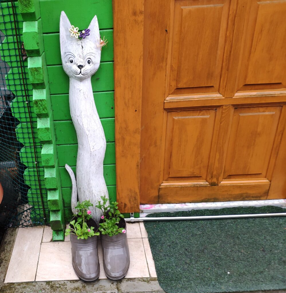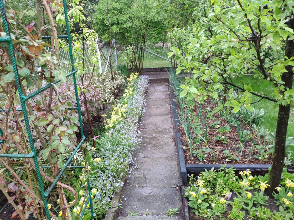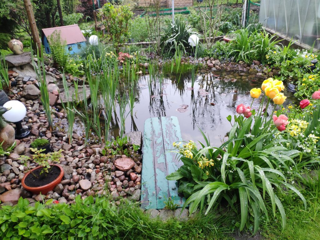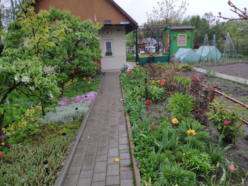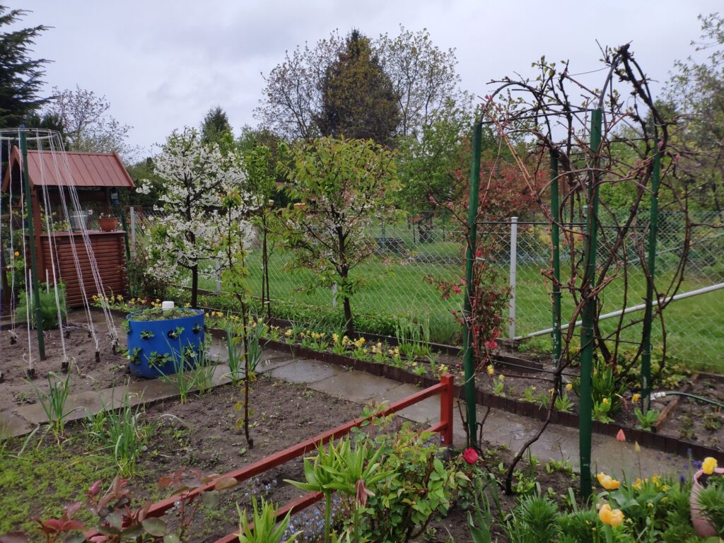 Pełnia i deszcz, to czas na porządki w ogrodzie. W chwilach bezdeszczowych rozciągnęłam sznurki na rusztowaniu w maliniaku, a w deszczowych przesiedziałam w szklarence, robiąc porządeczki na półeczkach i w szafeczce. Stół jeszcze jest zajęty przez sadzonki pomidorów. Dużo czasu zajęło mi także sprzątanie w moim domeczku: umyłam okieneczka, uprałam i rozwiesiłam firaneczki. Umyłam drzwi i wyszorowałam podłogi. Na koniec tej pracy okazało się, że mam dziurawego jednego kalosza. Żal wyrzucić, więc podarowałem je Fionie. Dowartościowałam się wyjątkowo.
