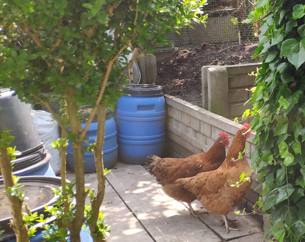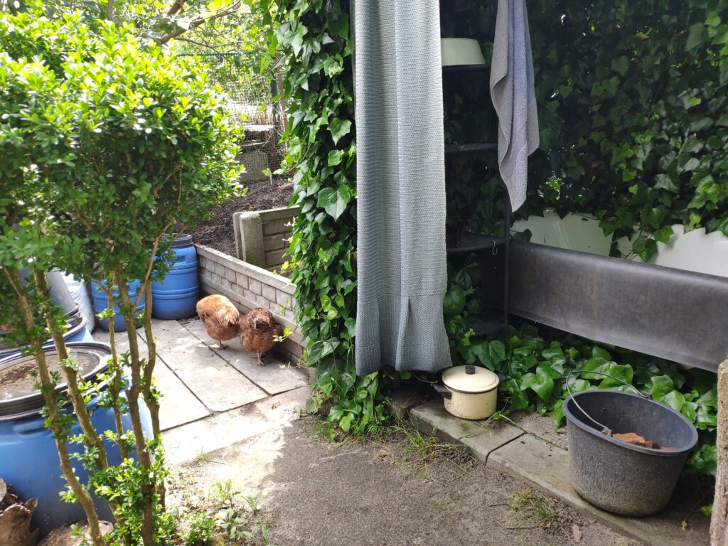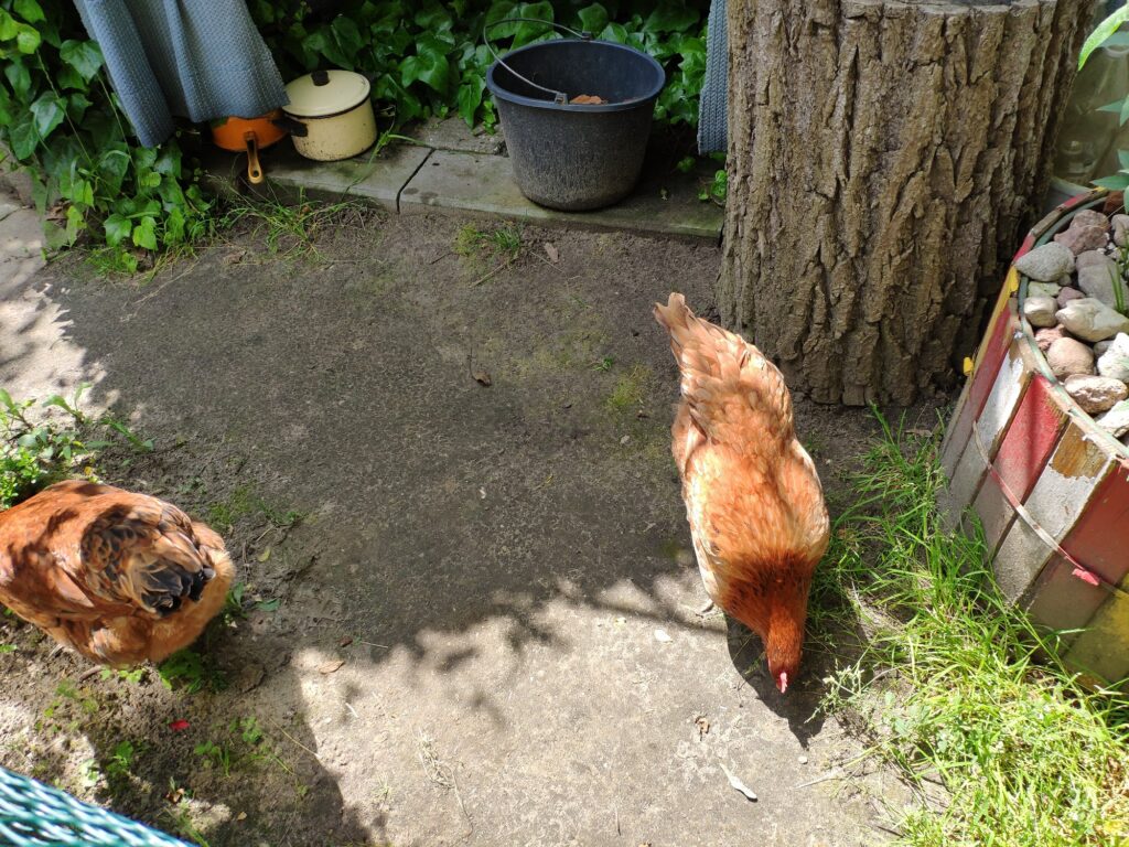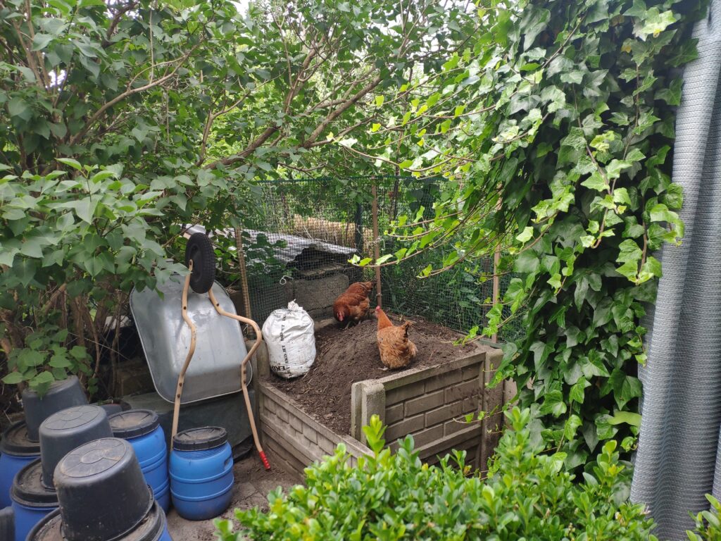 Postanowiłam, że udostępnię moim kurkom kompostownik, gdyż wsadzone na nim pestki dyni olbrzymiej nie wzeszły. W ubiegłym roku kurki trzy miały na nim używanie, więc byłam ciekawa, czy obecnym moim kurkom też on się spodoba.