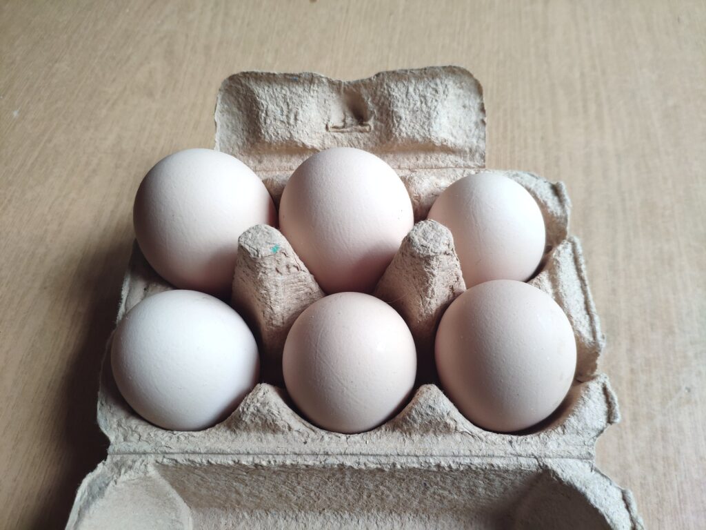 Majka codziennie rano znosi małe jajeczka, a jak jej się nie uda, to na bank następnego dnia będzie duże jajko z podwójnym żółtkiem. Odkąd zaczęła się nieść już były takie cztery wielkie jaja. Na temat jajek z dwoma żółtkami , a nawet z trzema (rekord to 9 żółtek) krąży wiele przesądów. Niektórzy uważają też, że nie są zdrowe, że modyfikowane genetycznie itp. Naczytałam się o tym w Internecie. Ja mam własne zdanie na ten temat. Sama jestem z bliźniąt, więc jakże mogłabym tak myśleć o mojej Majce. Uważam, że taka jest jej natura. Natomiast w smaku jajka z dwoma żółtkami niczym się nie różnią od tych z jednym żółtkiem. Natomiast Oliwka jajek jeszcze nie znosi. Co prawda zdarzyło się jej dwa razy znieść gumowe jajka, ale i one nie były dobrej jakości. Chyba ma jakiś problem, choć wygląda na zdrową i apetyt jej nie brakuje. Upasła się i w porównaniu do Majki jest gruba. Nie wiem czemu Oliwka nie znosi jajek, ale zauważyłam też, że do jedzenia nie pcha się pierwsza, tylko najpierw pozwala najeść się Majce. Chyba rozumie sytuację. A mówi się, że kury są głupie. Na pewno nie moje.
