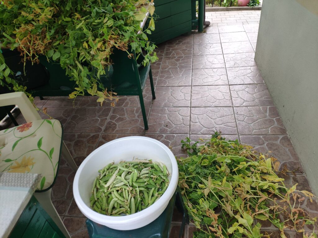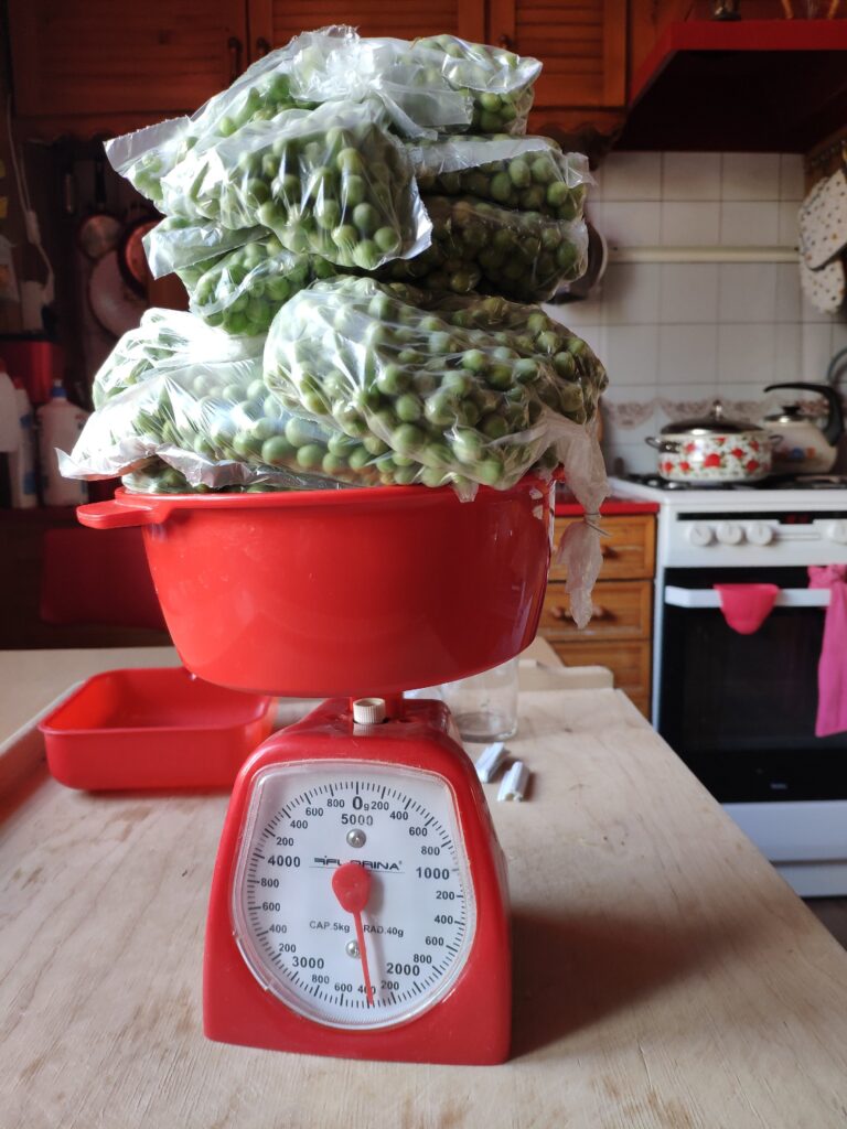 A dzisiaj zbiór tego groszku – 2,4 kg. Po jednej szklance spakowałam do torebeczek i 15 obiadków czeka w zamrażarce.