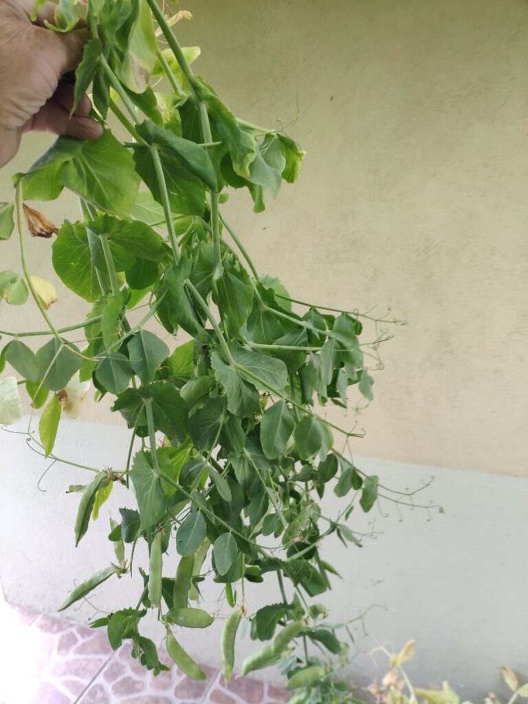 Szukając w Internecie różnych pomysłów na prowadzenie warzywnika znalazłam pomysł, aby groszek cukrowy sześciotygodniowy posadzić przed ogórkami. Najpierw należało posadzić groszek, a gdy ten już się dobrze zazieleni zrobić mu podpory ze sznurka i przed nim posiać ogórki. Gdy groszek dojrzeje wyciąć go przy ziemi (nie wyrywać), gdyż jego korzenie dobrze wpływają na plon ogórków. Tak więc też zrobiłam w tym roku.