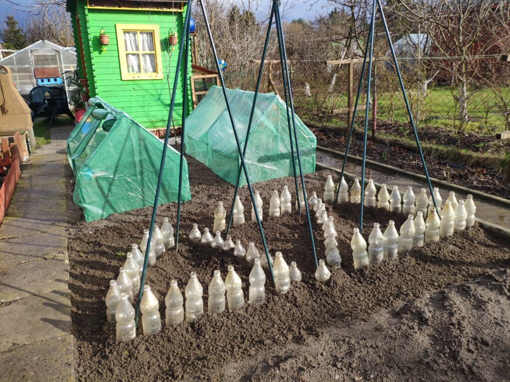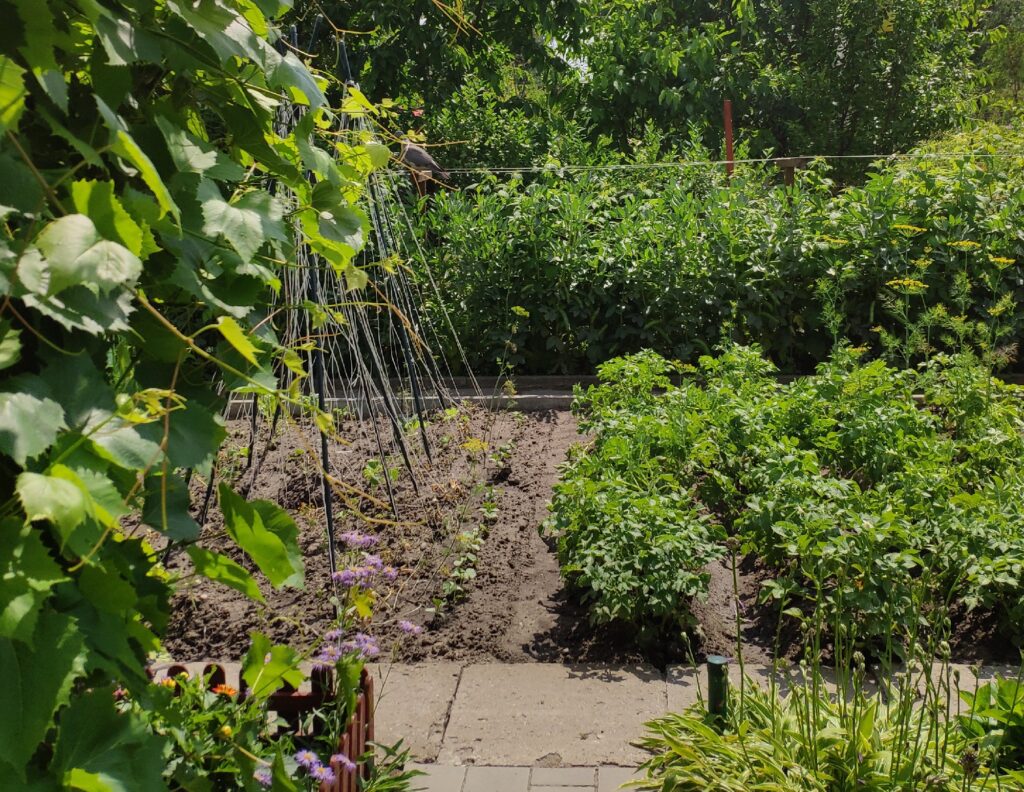Co zrobiłam nie tak? Powinnam groch zasiać bardziej do środka tych wigwamów, żeby zrobić wygodne miejsca dla ogórków. No i nie siać ogórków w środkowej części tych wigwamów, tylko na zewnątrz. Dlatego też zbiór ogórków nie wiem czy się uda, gdyż bardzo późno dosiewałam drugą partię.