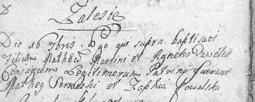 1726r. – akt urodzenia Tomasza Pawełka syna Marcina i Agnieszki