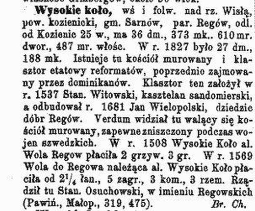 W Słowniku geograficznym Królestwa Polskiego czytamy o Wysokim Kole: