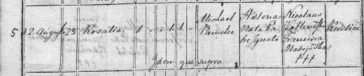 1799r. – akt urodzenia Rosalii Pawelec córki Michała i Heleny Madejowskiej