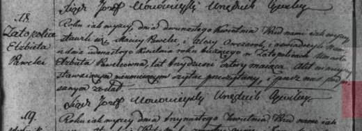 1818r. – akt zgonu Elżbiety Pawelcowej w Zatopolicach.