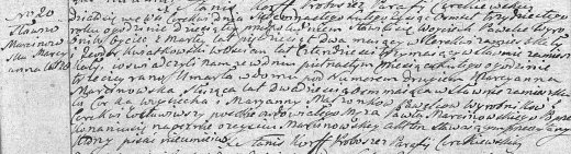 Marcysia miała 16 lat, gdy wychodziła za mąż. Paweł miał lat 27.Dokładnie za rok, 8 lutego 1821 roku, w Zatopolicach pod nr 6, czyli w domu swoich rodziców, Marcysia urodziła synka Jasia. Córeczkę Kasię urodziła 10 listopada 1823 r. w Cerekwi na komornym u teściowej. Antosia urodziła 1 czerwca 1829r. w Sławnie pod numerem 30, a Kubę 14 lipca 1829 r. także w Sławnie, ale pod nr 2.Za pół roku , 15 lutego 1830 r. w Sławnie pod nr 6 Marcysia umarła. Miała 26 lat. Rodzice Marcysi zostali bez dzieci.