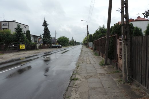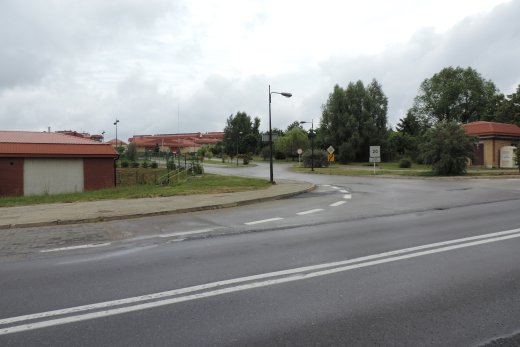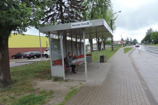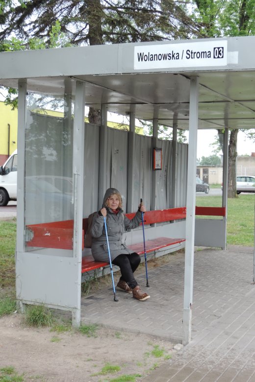 Opuszczając pętlę autobusową jakbyśmy już wyszły z miasta. Zmęczenie daje mi znak, że pora na odpoczynek. Jeszcze tylko zabudowania więzienia i właściwie koniec wycieczki. Idziemy powoli lewym poboczem, bo tu już nie ma chodników. Chodniki zasadniczo skończyły się na „Biedronce”. Są tylko utwardzone pobocza. Mijamy po przeciwnej stronie ROD „Malinkę 2″i dochodzimy do więzienia. Robi wrażenie. Na chwilę zatrzymujemy się na przystanku autobusowym „8” przed więzieniem. Są dwa – dla wsiadających i dla wysiadających. Pełna kultura na przystankach. Są chodniki.
