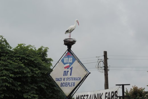 Dochodzimy do pętli autobusowej „8”. Patrząc na reklamę kleju Atlas, przypomina mi się moja fraszka „Na bociany”, którą napisałam 15 lat temu: <zmieniły się=”” na=”” wsi=”” czasy=”” zamiast=”” bocianów=”” –=”” klekoczą=”” atlasy=””>.