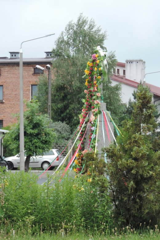 Na skrzyżowani z ul. Milejowicką stoi przydrożny krzyż.