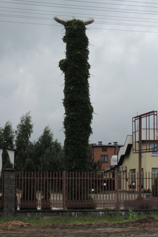 Za pętlą autobusową zwracają uwagę porośnięte bluszczem słupy oświetleniowe.