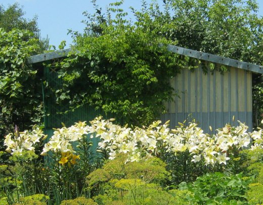 Kwitną lilie. Piękne są moje lilie, ale lilie mojego sąsiada (pana Józefa) są wyjątkowo urokliwe i na dodatek ma ich na działce bardzo dużo. Umie o nie dbać. Nie powiem – podpatruję, pytam. Może w przyszłym roku dorównam.