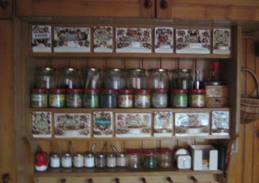 Wreszcie moje kolorowe sole doczekały się wystawki. Malutkie słoiczki z łyżeczkami kupiłam w „Prymusie”. Na spodzie każdego słoiczka umieściłam karteczki z nazwami soli. Teraz stoją na półce razem z przyprawami i cieszą moje oczy. Dowartościowałam się.