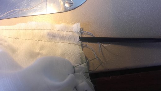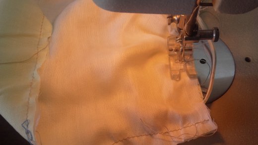 Kończąc zszywanie boku nad recepturką też wzmacniam szew