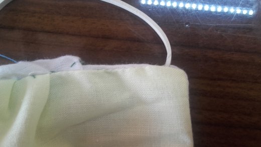 Tak powinien wyglądać zszyty bok wraz z recepturką. W taki sposób zszywam wszystkie boki maseczek.