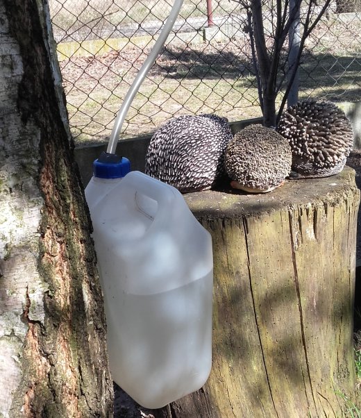 Drzewa owocowe szykują się do kwitnienia. Brzoza powoli rozwija swoje listeczki. Jak co roku pobieram z niej wodę do picia. Jest dobra na mój kaszel.