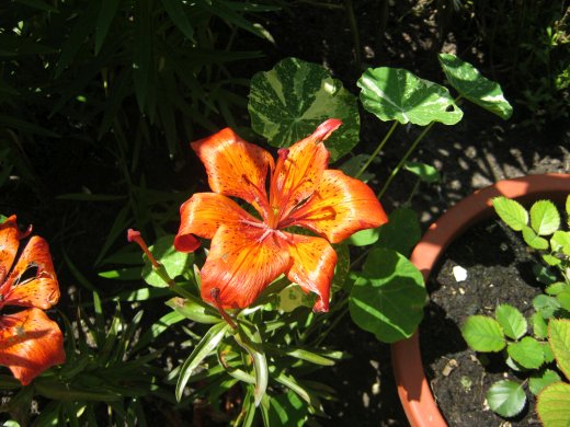 W rabatce kwiatowej zaczynają rozkwitać lilie.