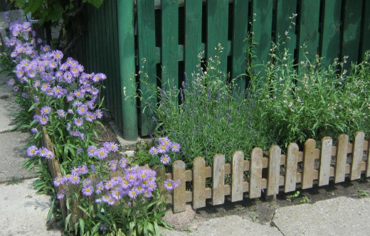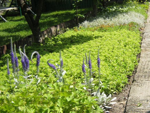 Po prymulkach i pierwiosnku lekarskim wzdłuż chodniczków zakwitły astry chińskie. Spodziewam się, że po nich jeszcze raz (tak jak i w ubiegłym roku) zakwitną prymule (może nie wszystkie).