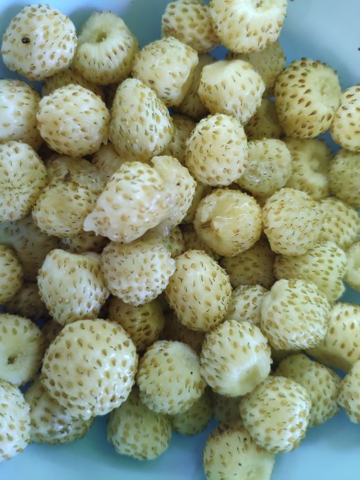 Zajadamy się białymi poziomkami.Zaskoczyły mnie w tym roku – jest ich dużo i są bardzo słodkie. Posadziłam je pod aroniami i pięknie tam zagospodarowały się nie dając szansy chwastom.