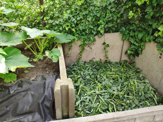 Łodygi po bobie tnę na kawałki i rozkładam równo w kompostowniku.